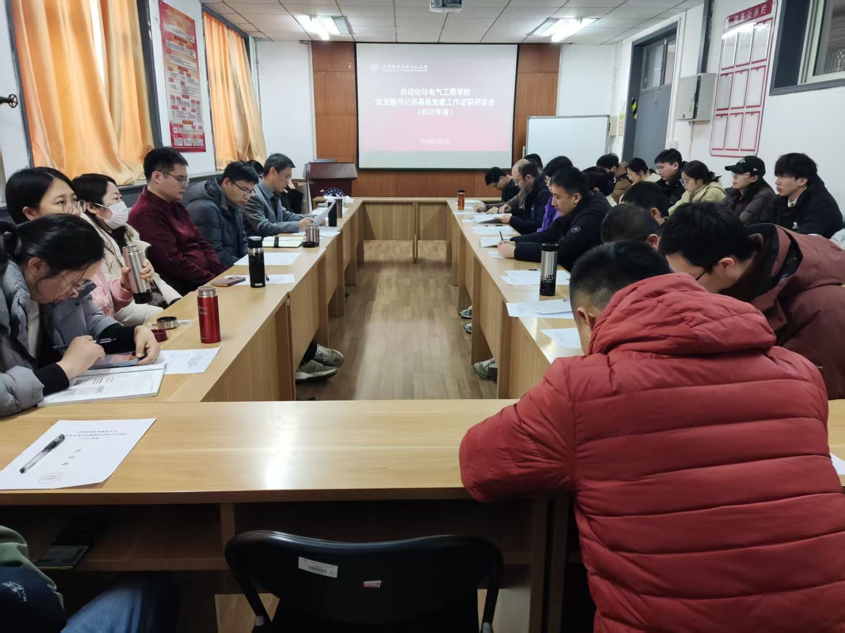 党委在东楼205召开2025年度党支部书记抓基层党建工作述职评议会。校党委教师工作部副部长刘欠欠列席指导,学院党委班子成员、学院所属基层党支部书记、委员及党员代表参会,学院党委书记吴平主持会议。