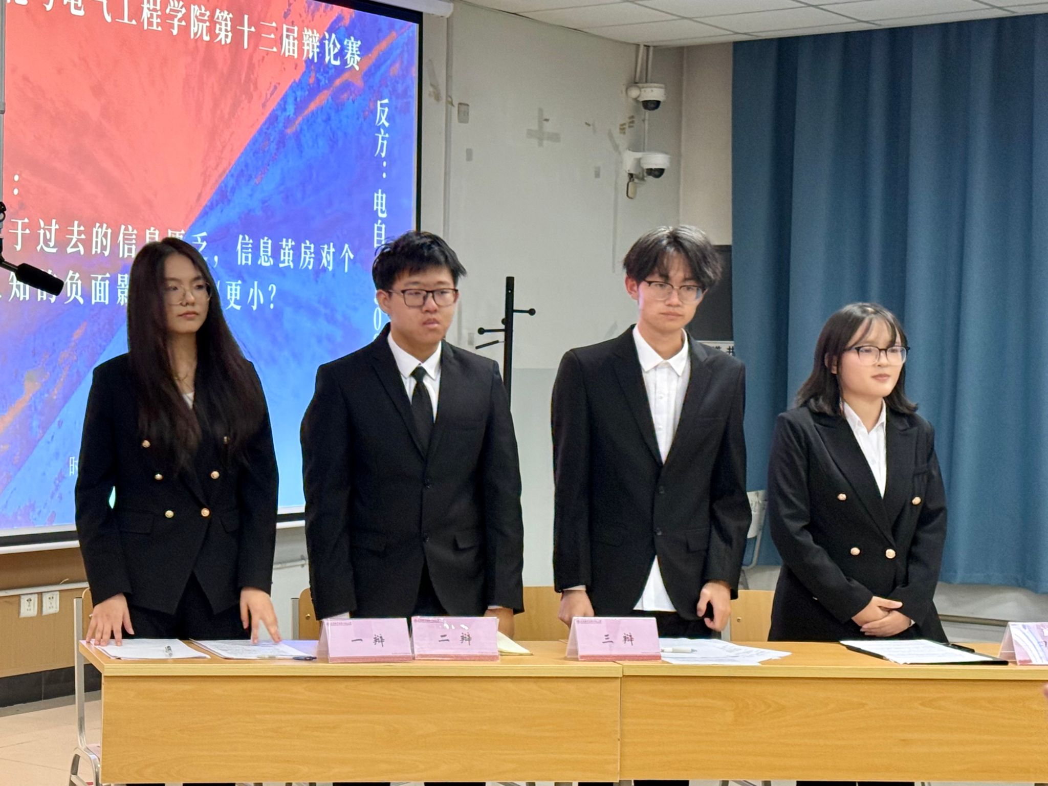 本次辩论赛自启动以来,共有16支队伍踊跃参赛,历经多轮淘汰赛的层层筛选,最终4支优秀队伍脱颖而出晋级决赛。决赛现场,聚焦核心辩题“相比于过去的信息匮乏,信息茧房对个体认知的负面影响更大还是更小”,4支队伍分为两组同题对垒,展开激烈交锋。比赛过程中,双方在开篇立论环节构建起清晰的逻辑框架;驳论与自由辩论阶段则针锋相对,围绕认知局限、思维独立等层面深入攻防,展现出敏捷的思辨能力;总结陈词时,选手们梳理主线、回归立论,体现出良好的综合素养。