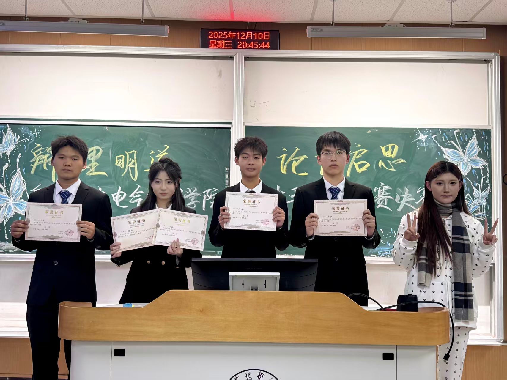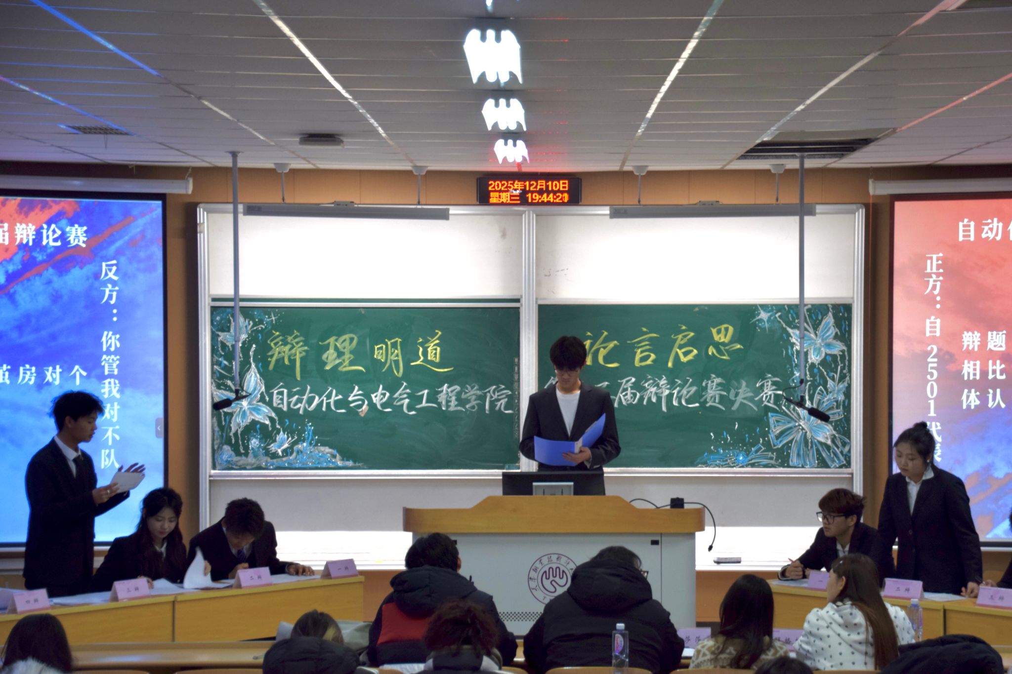 赛后,评委们从逻辑结构、论证深度、语言表达及临场反应等方面进行了专业点评,在充分肯定选手表现的同时,也提出了中肯的改进建议。经过激烈比拼,电自2501班代表队斩获冠军,自2501班代表队荣获亚军,电自2502班代表队夺得季军,自2502班代表队获得优秀奖。