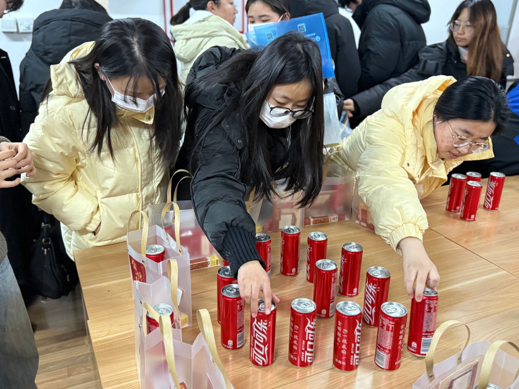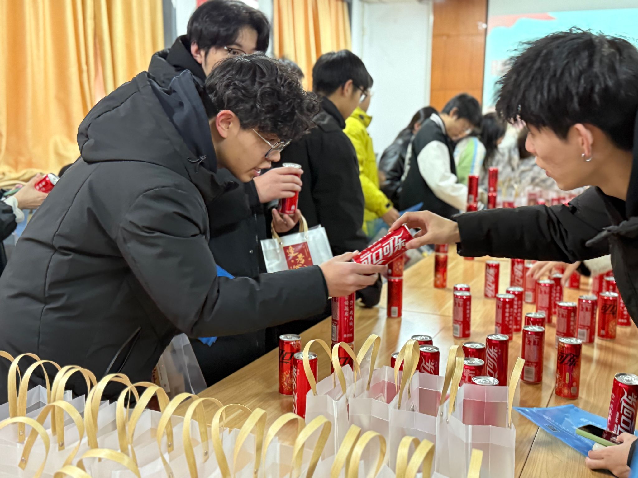 活动现场暖意融融,学院领导与老师亲手将饱含期许的“‘研’战必胜暖心礼包”逐一送到学子手中,并送上祝福。礼包内的每一份物品都承载着学院对考研学子的细致关怀与美好祝愿,定制可乐印刻“金榜题名,一战成硕”字样,为学子注入轻松应考的信心;精致书签套装寓意“书香盈袖,签载前程”,陪伴学子在题海书香中笃行不怠;盲盒笔助力学子“笔翰如流,思路畅通”,从容应对考场挑战;而一张张手写祝福卡片,更是凝聚着师长们的殷殷嘱托与真挚期盼,让备考路上的学子倍感温暖。
